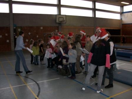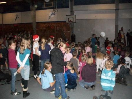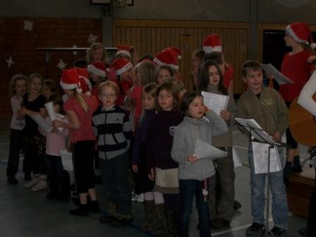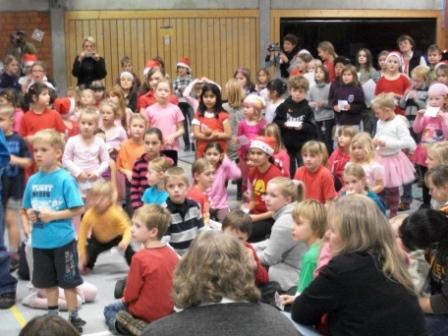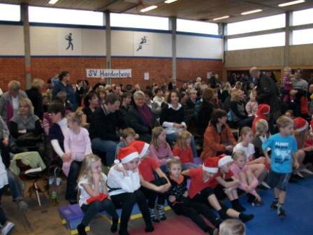 Der Harderberger Kinderchor begrüßte, in der liebevoll geschmückten Turnhalle, die vielen Gäste mit einem Adventslied. Dabei kam jeder so richtig in Weihnachtsstimmung.