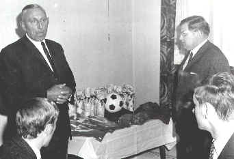 | Bürgermeister A. Aulf und Gemeindedirektor Werkmeister bei der Meisterfeier in der Vereinsgaststätte |