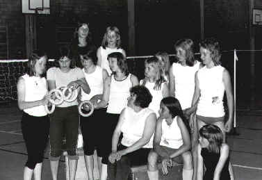 Von den Gründungsdamen waren noch Helga Schnock, Lisa Vogelsang, Rita Kasselmann, Ursula Völskow, , Marlies Brörmann und Magdalene Schulz (nicht abgebildet) dabei. Als 1973 die Turnhalle in Harderberg bezogen werden konnte, schnellte die Mitgliederzahl auf 100 in die Höhe. Somit musste in zwei Gruppen geturnt werden. Im Juni 1976 umfaßte die "Damen Turnriege" bereits 120 Damen. Unter der Leitung von Frauenturnwartin Lisa Vogelsang wurden außerdem Wanderungen und Feste für die Damenabteilung organisiert. |